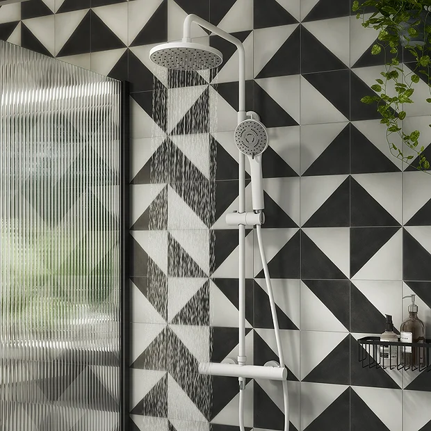 The Arezzo Matt White complete thermostatic shower set offers both the flexibility of a lightweight multi-function spray pattern shower handset and the extravagance of a fixed round overhead drencher. This premium matt white thermostatic shower comes complete with the newest ceramic disc technology and is easy to install. Featuring shower fixtures in a contemporary round design, it will make a sophisticated centrepiece in your wet room or bathroom. Both shower heads have nozzles than can be rubbed clean to make limescale removal quick and easy.