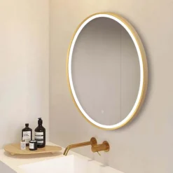Arezzo Brushed Brass 700mm Round LED Illuminated Anti-Fog Bathroom Mirror
