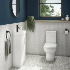 Milan Minimalist Compact Floor Standing Vanity Unit + Knedlington Close Coupled Toilet