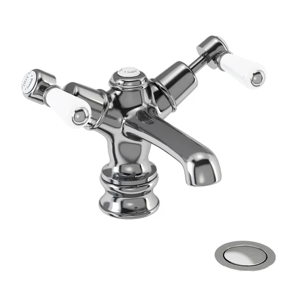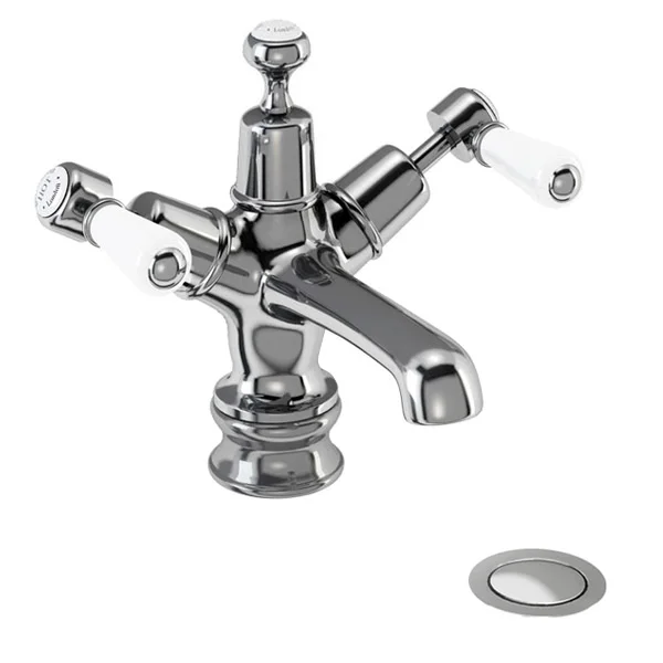 Burlington Kensington Regent – Chrome Basin Mixer Tap with High / Low Central Burlington Ceramic Indice with Click-Clack Waste – KER6