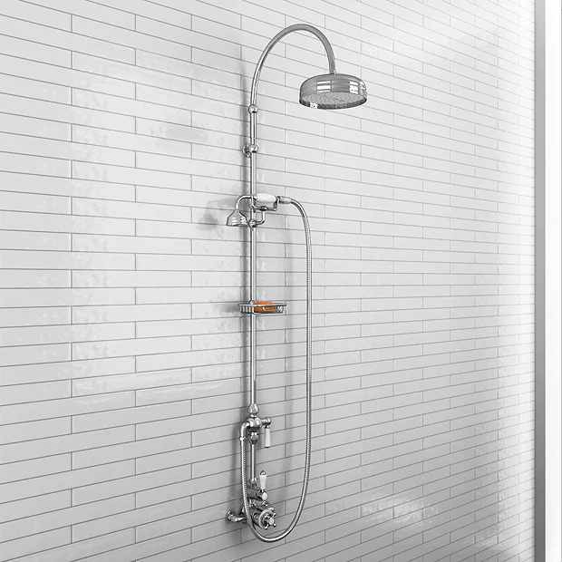 Chatsworth 1928 Traditional Exposed Valve Inc. Deluxe Arching Shower Riser Kit (200mm Rainfall Rose, Telephone Shower Handset with Cradle, Diverter & Soap Basket)