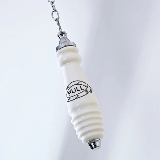 A traditional chrome plated brass high level flush pipe kit from period bathroom specialists Chatsworth. Kit features decorative brackets, flush pipes and ceramic hand flush with chain. Add the finishing touch to your traditional bathroom, with this stylish high level flush pipe kit.