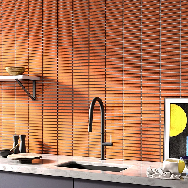 Otsu Concave Kit-Kat Mosaic Tile Sheet Gloss Barn Red – 295 X 295mm
