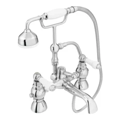 Chatsworth 1928 Traditional White Lever Bath Shower Mixer Tap With Shower Kit