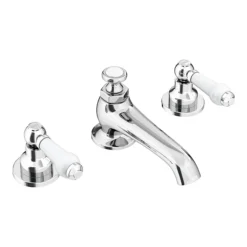Chatsworth 1928 Traditional 3TH White Lever Basin Mixer Tap + Waste